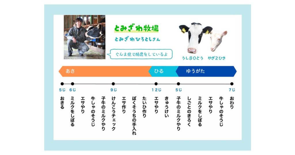 - 酪農家 富澤裕敏 さま ※牧場の音クイズで、ご紹介している「とみざわ牧場の1日」
